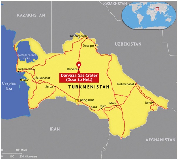 Darvaza, Turkmenistan, approximately 260 kilometers north of Ashgabat.