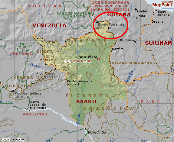 Mount Roraima is located at the triple border point of Venezuela, Brazil, and Guyana in South America.