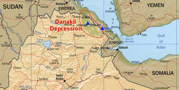Darvaza, The Danakil Depression is located in northeastern Ethiopia, near the border with Eritrea.