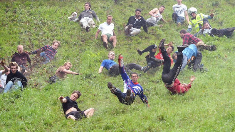 Well, it’s quite simple, really. The main cheese rolling event, there are usually several other races held throughout the day, including races for children and downhill races without the cheese.
